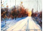 A Maros-parti béke című festmény egy lírai hangulatú tájkép, amely a természet csendes, békés varázsát örökíti meg. A kép középpontjában egy lágyan kanyargó földút húzódik, amely mintha egy álomszerű, nyugodt világba vezetné a szemlélőt. A két oldalon finoman meghajló fák sorakoznak; törzsük játékos ívei és a lombok élénk színei – a zöld, a sárga és az őszies árnyalatok – harmonikus egésszé olvadnak össze.