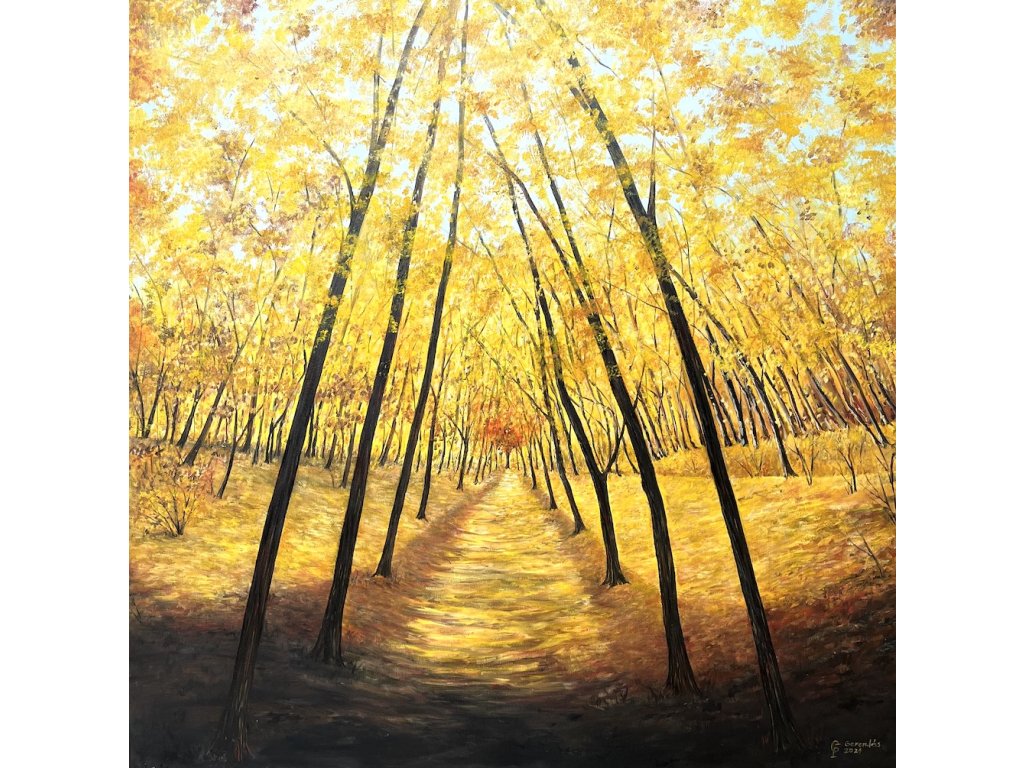 Ebben az impresszionista, varázslatos őszi erdőben minden levél sárga-halvány narancs és az enyhe völgyben a fák különlegesen egymás felé nőnek, szinte összetartanak. Szándékom nem csak a természet szépségének bemutatása volt, hanem azt a mélyebb üzenetet is hordozza magában, hogy milyen jó lenne, ha mindenki egy irányba haladna, egymást segítve és támogatva. A közösség ereje és az összetartás üzenete jelenik meg az erdő fáin keresztül.